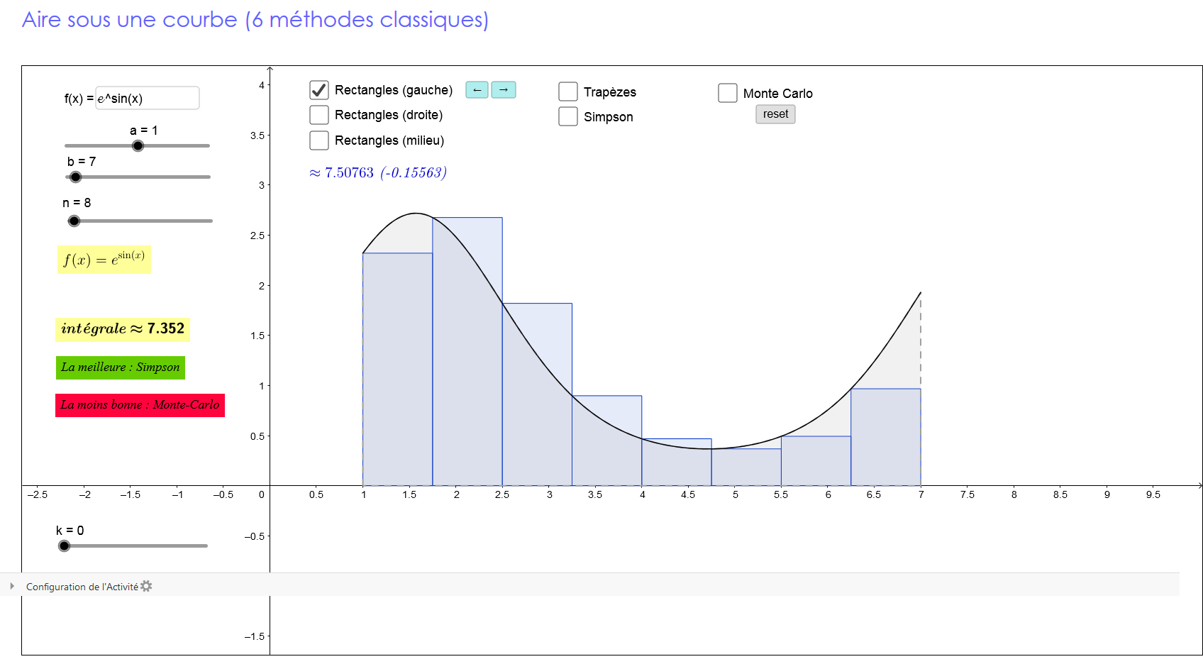 Nous avons vu la méthode Monte-Carlo dans l'exercice 94 p.274, ce qui nous a permis de calculer l'intégrale d'une fonction dont on ne connaît pas de primitive.