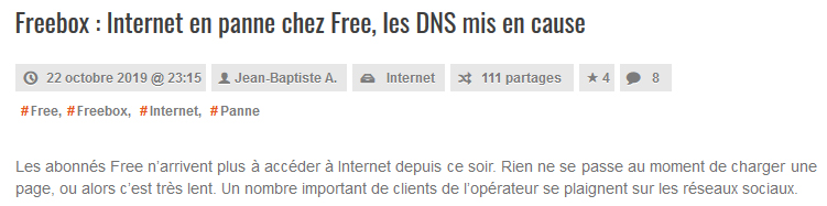 Ceux qui savent changer les DNS (voir lien) sont invités à le faire dès maintenant pour retrouver une connexion Internet fonctionnelle.