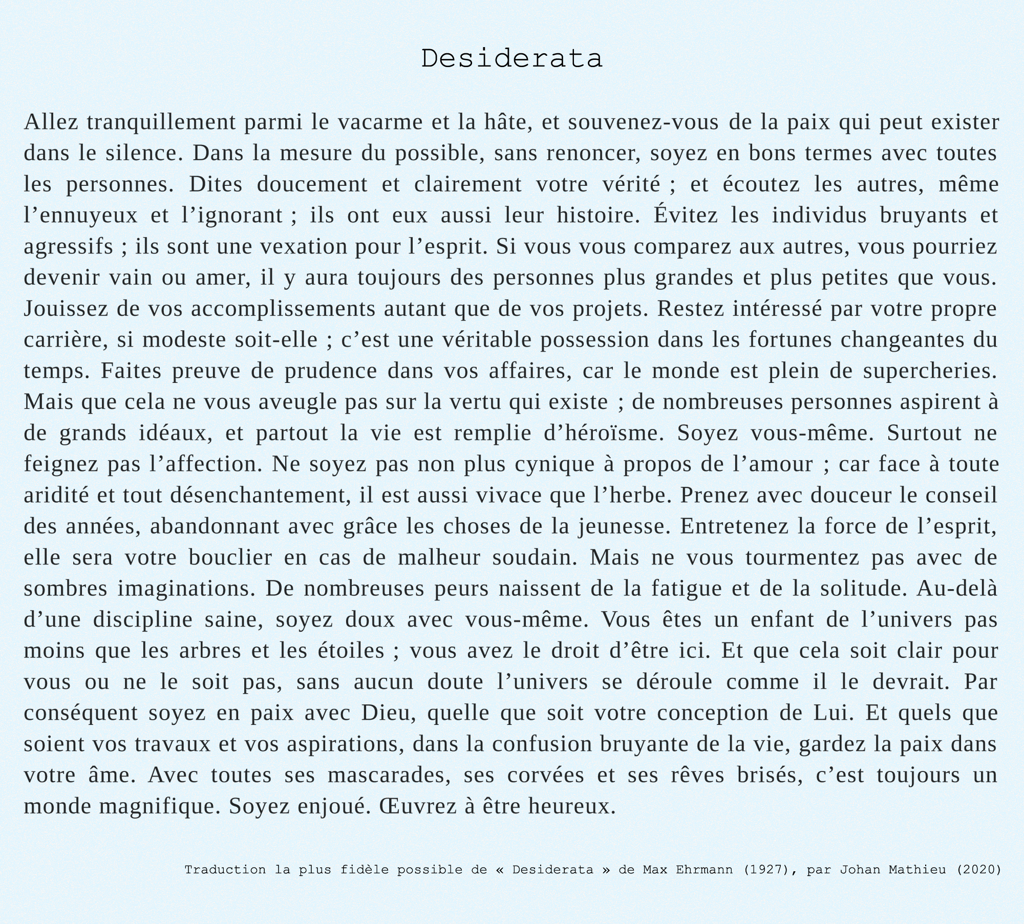 => toute l'histoire de Desiderata, en version PDF à télécharger : <=