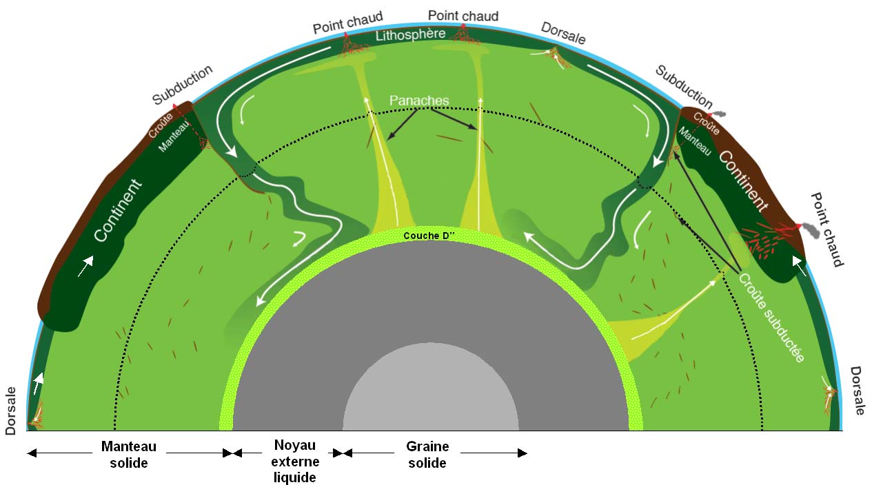 Comme l'écrit Marine Lasbleis sur son superbe blog (toutlabasendessous.wordpress.com), avec un manteau vert, c’est plus difficile de penser que le manteau est liquide, non ? Comme sur ce dessin provenant d’un article de Pierre Thomas et Stéphane Labrosse :